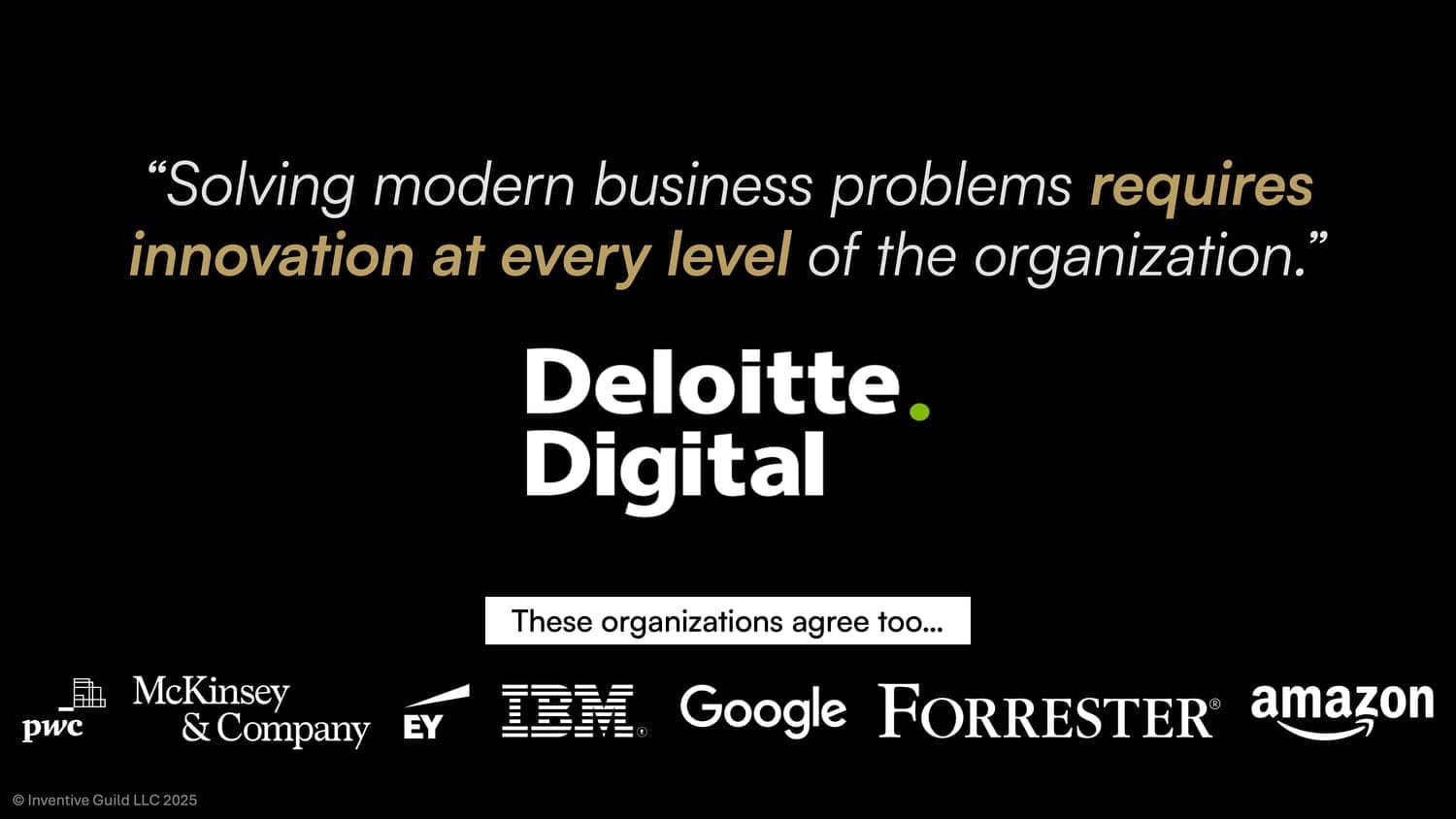“This isn’t training. It’s transformation. Within weeks, your team will be producing ideas and transforming them into actionable concepts that would have taken months before.”
